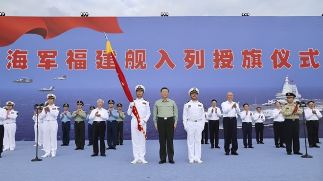 我國第一艘電磁彈射型航空母艦入列 習近平出席入列授旗儀式并登...